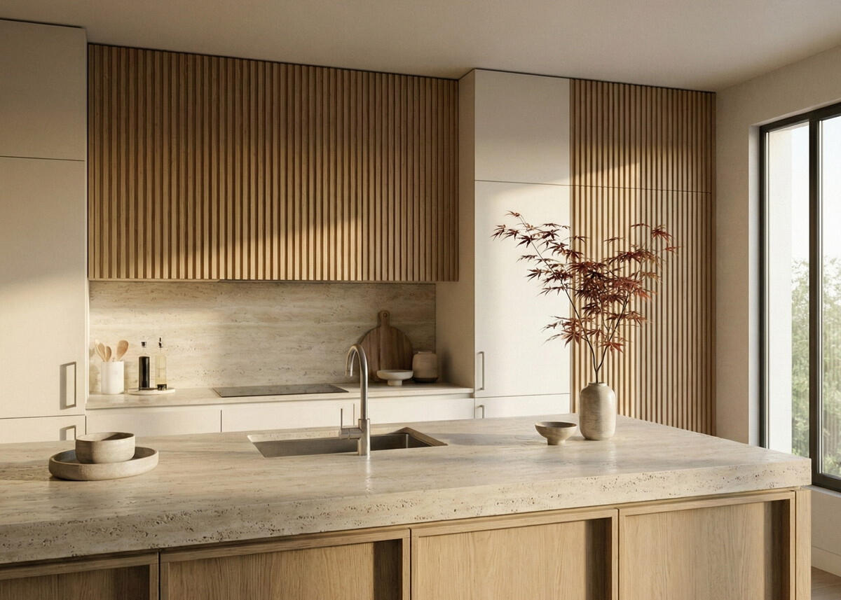 JAPANDI: HARMONIA W CZYSTEJ FORMIEWyobraź sobie poranek, gdzie światło miękko ślizga się po naturalnym kamieniu. Ta kuchnia to coś więcej niż miejsce do gotowania - to sensualne doświadczenie. Połączyliśmy tu satynowy w dotyku fornir z jasnego dębu (white oak) z monumentalną wyspą z naturalnego trawertynu. Jego surowa, porowata struktura prowadzi fascynujący dialog z precyzją frezowanych lameli i gładkim, ciepłym matem frontów.Jako specjaliści od zabudowy na wymiar, jesteśmy wrogami "powietrza" i zbędnych zaślepek. Tutaj zabudowa sięga samego sufitu, eliminując nieestetyczne blendy i wykorzystując każdy milimetr na przechowywanie. To inżynieryjna precyzja ubrana w piękno.Dla Właścicieli najważniejsza była „wizualna cisza”. Jak sami twierdzą - odkąd mają tę kuchnię, nawet szybkie espresso przed wyjściem do pracy smakuje jak chwila medytacji w luksusowym spa.Dlaczego Japandi? Bo w świecie pełnym hałasu i wszechobecnych dystraktorów, nasze domy stają się jedynym miejscem, gdzie możemy zwolnić. To styl, który uspokaja i leczy zszargane nerwy.Gotowy na wnętrze, które oddycha razem z Tobą? Napisz do nas wiadomość prywatną lub zadzwoń, aby umówić się na darmową konsultację i wycenę.